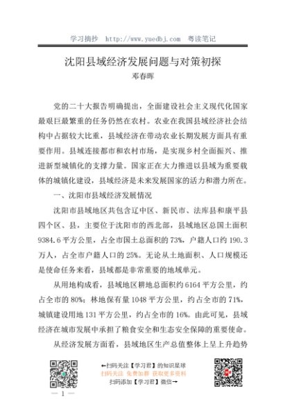 / 调研报告:20240430沈阳县域经济发展问题与对策初探——邓春晖