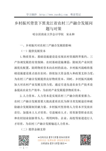 / 调研报告:20240430乡村振兴背景下黑龙江省农村三产融合发展问题与对策——哈尔滨商业大学会计学院 宋永和