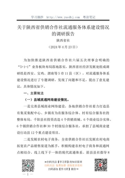 / 调研报告:20240423关于陕西省供销合作社流通服务体系建设情况的调研报告——陕西省社