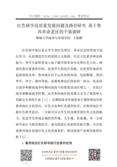 / 调研报告:20240328红色研学高质量发展问题及路径研究——聊城大学地理与环境学院 王振鹏