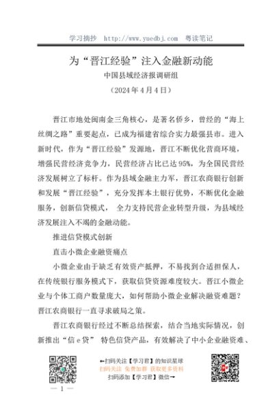 / 调研报告:20240404为“晋江经验”注入金融新动能——中国县域经济报调研组