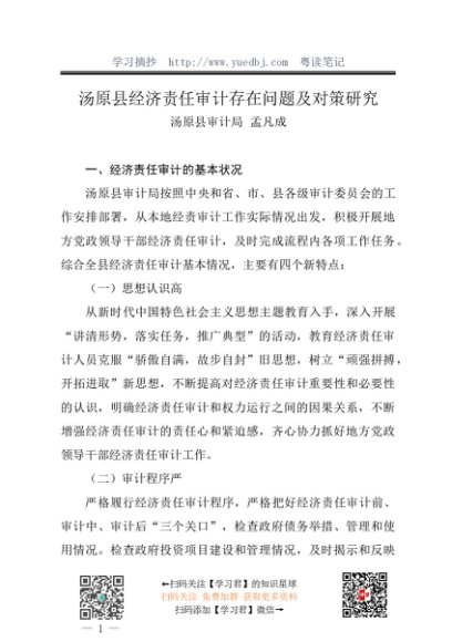 / 调研报告:20240328汤原县经济责任审计存在问题及对策研究——汤原县审计局 孟凡成