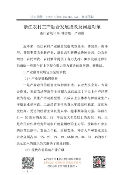 / 调研报告:20240430浙江农村三产融合发展成效及问题对策——浙江省统计局 钟彦琰 严诚霞
