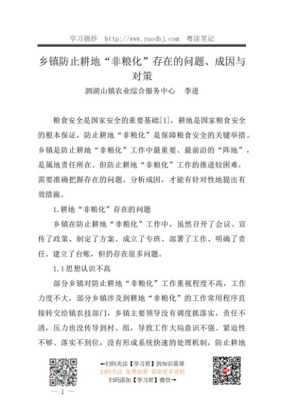 / 调研报告:20240430乡镇防止耕地“非粮化”存在的问题、成因与对策——泗湖山镇农业综合服务中心 李进