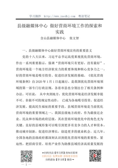/ 调研报告:20240430县级融媒体中心 做好营商环境工作的探索和实践——含山县融媒体中心 张文智