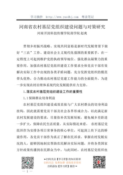 / 调研报告:20240430河南省农村基层党组织建设问题与对策研究——河南开封科技传媒学院商学院 赵爽