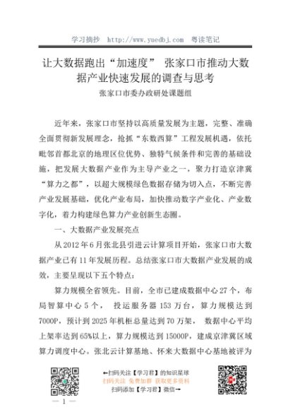 / 调研报告:20240430张家口市推动大数据产业快速发展的调查与思考——张家口市委办政研处课题组
