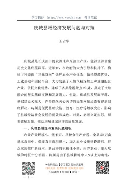 / 调研报告:20240530庆城县域经济发展问题与对策