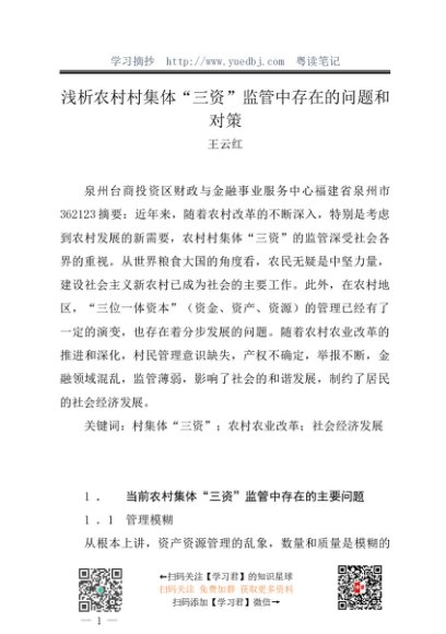 / 调研报告:20240530浅析农村村集体“三资”监管中存在的问题和对策
