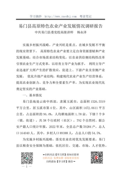 / 调研报告:20240430易门县高原特色农业产业发展情况调研报告——中共易门县委党校高级讲师 杨永泽
