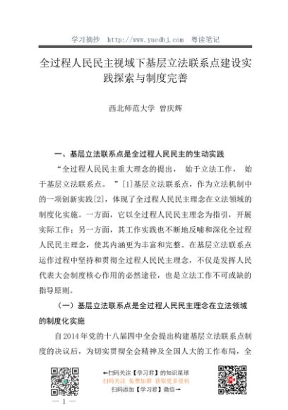 / 调研报告:20240530全过程人民民主视域下基层立法联系点建设实践探索与制度完善——西北师范大学