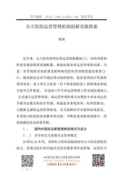 / 调研报告:20240530公立医院运营管理机制创新实践探索