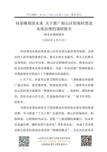 / 调研报告:20240409关于推广相山区程阁村黑臭水体治理的调研报告——淮北市委政研室