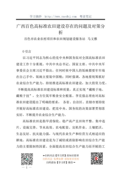 / 调研报告:20240430广西百色高标准农田建设存在的问题及对策分析——百色市农业农村项目和农田规划建设服务站马文雅