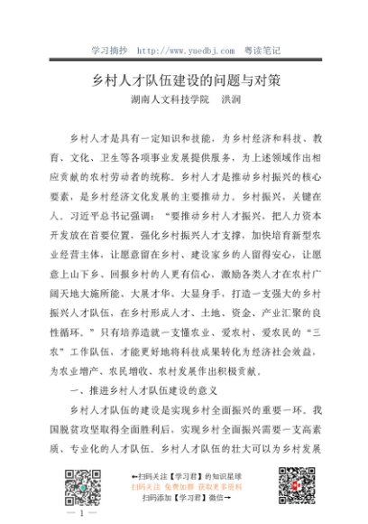 / 调研报告:20240430乡村人才队伍建设的问题与对策——湖南人文科技学院 洪润