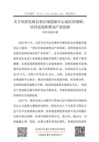 / 调研报告:20240330关于巩固发展长春区域创新中心地位的调研:以科技创新推动产业创新——中共长春市委