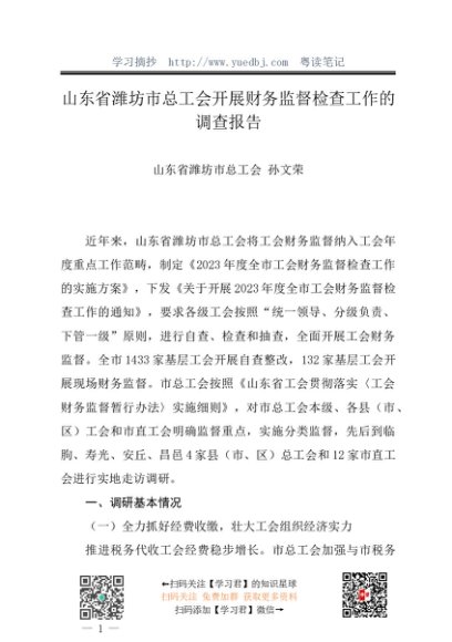/ 调研报告:20240530山东省潍坊市总工会开展财务监督检查工作的调查报告——山东省潍坊市总工会