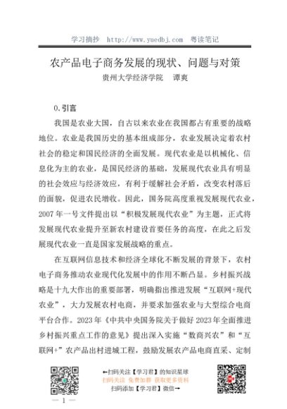/ 调研报告:20240328农产品电子商务发展的现状、问题与对策——贵州大学经济学院 谭爽