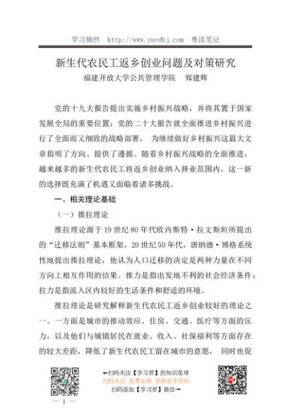 / 调研报告:20240228新生代农民工返乡创业问题及对策研究——福建开放大学公共管理学院