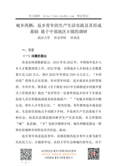 / 调研报告:20240328城乡两栖:返乡青年的生产生活实践及其形成基础——武汉大学社会学院