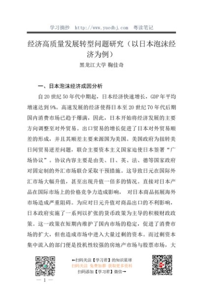 / 调研报告:20231230经济高质量发展转型问题研究(以日本泡沫经济为例)