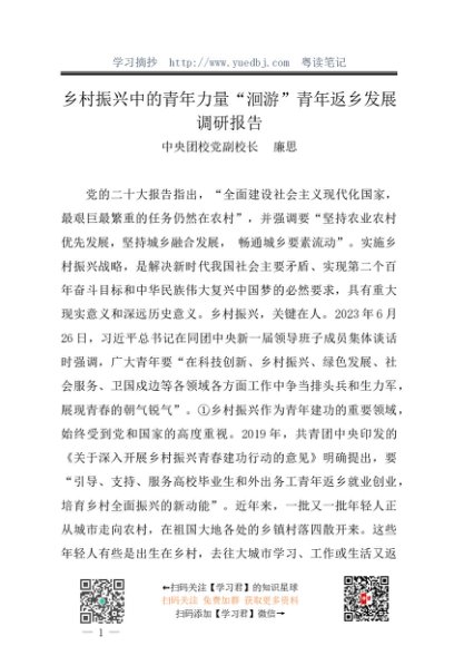 / 调研报告:20240130乡村振兴中的青年力量“洄游”青年返乡发展调研报告——中央团校党副校长