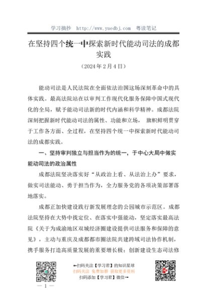 / 调研报告:20240204在坚持四个统一中探索新时代能动司法的成都实践