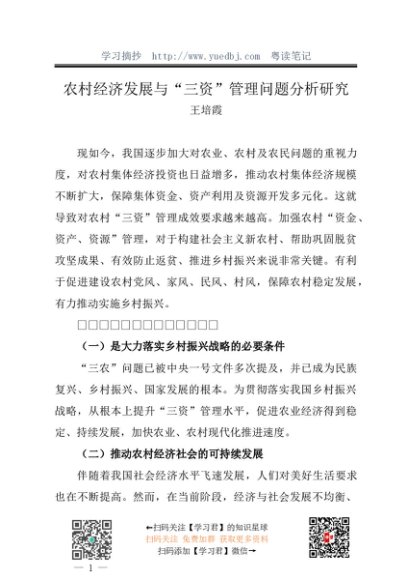 / 调研报告:20240130农村经济发展与“三资”管理问题分析研究