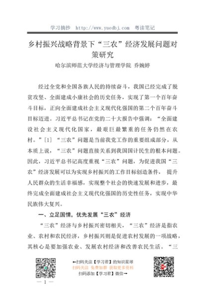 调研报告:20240328乡村振兴战略背景下“三农”经济发展问题对策研究——哈尔滨师范大学经济与管理学院乔婉婷
