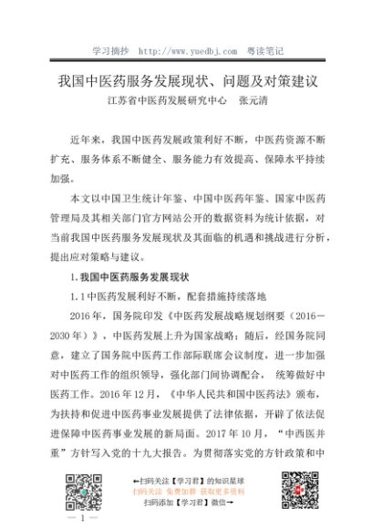 / 调研报告:20240328我国中医药服务发展现状、问题及对策建议——江苏省中医药发展研究中心 张元清