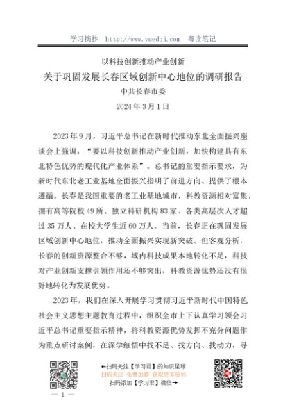 / 调研报告:20240301关于巩固发展长春区域创新中心地位的调研报告——中共长春市委