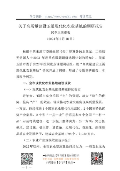 / 调研报告:20240218关于高质量建设玉溪现代化农业基地的调研报告——民革玉溪市委