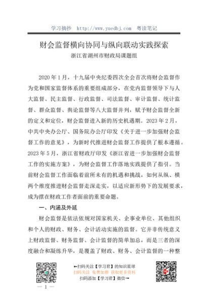 / 调研报告:20240130财会监督横向协同与纵向联动实践探索——浙江省湖州市财政局课题组