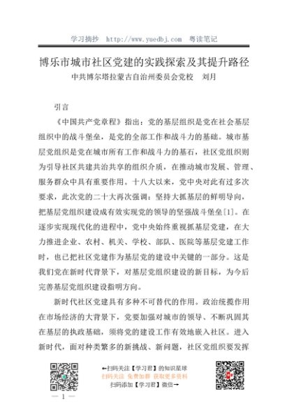 / 调研报告:20240228城市社区党建的实践探索及其提升路径——博尔塔拉蒙古自治州委员会党校
