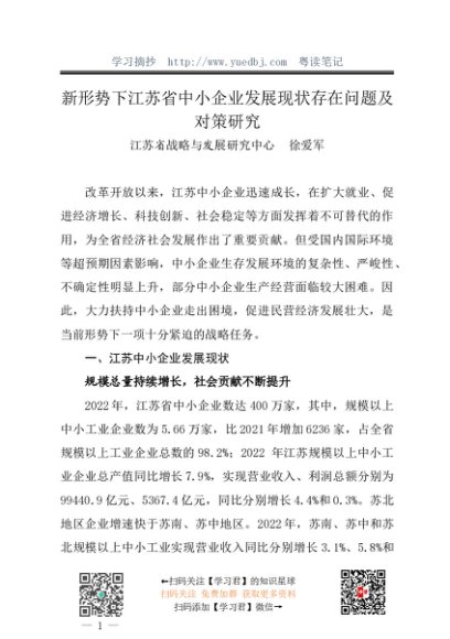 / 调研报告:20240328新形势下江苏省中小企业发展现状存在问题及对策研究——江苏省战略与发展研究中心 徐爱军