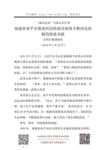 / 调研报告:20240322福建省南平市推进科技特派员制度不断深化拓展的探索实践——光明日报调研组