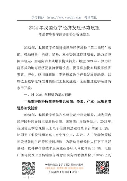 / 调研报告:20240328关于2024年我国数字经济发展形势展望——赛迪智库数字经济形势分析课题组