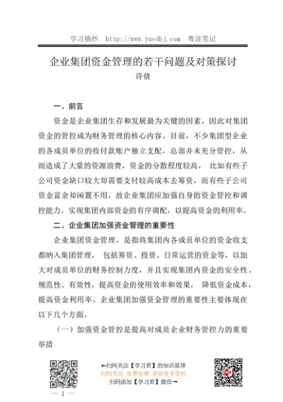 / 调研报告:20240228企业集团资金管理的若干问题及对策探讨