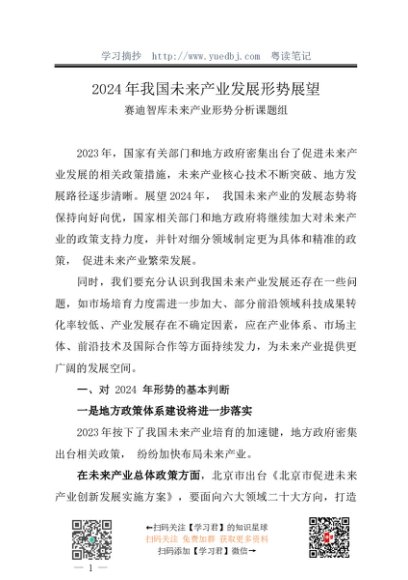 / 调研报告:20240130我国2024年未来产业发展形势展望——赛迪智库未来产业形势分析课题组