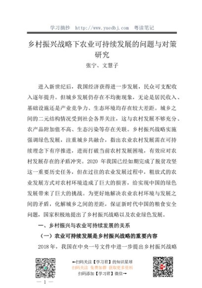 / 调研报告:20231130乡村振兴战略下农业可持续发展的问题与对策研究