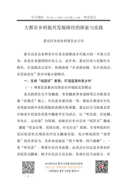 / 调研报告:20240228大都市乡村振兴发展路径的探索与实践——嘉定区农业农村委员会