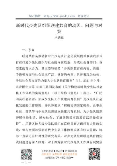 / 调研报告:20240328新时代少先队组织联建共育的动因、问题与对策