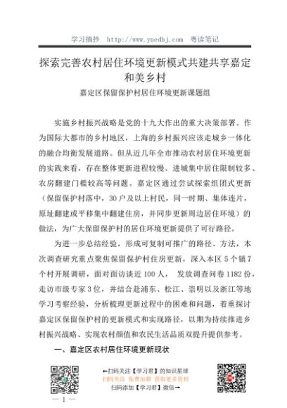/ 调研报告:20240130探索完善农村居住环境更新模式共建共享嘉定和美乡村——嘉定区保留保护村居住环境更新课题组