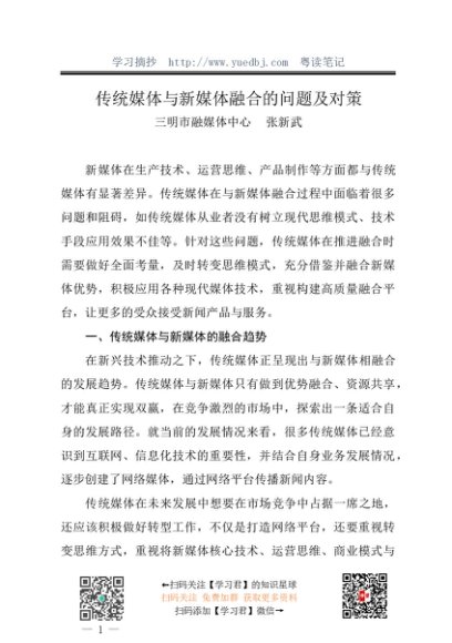 / 调研报告:20240328传统媒体与新媒体融合的问题及对策——三明市融媒体中心 张新武