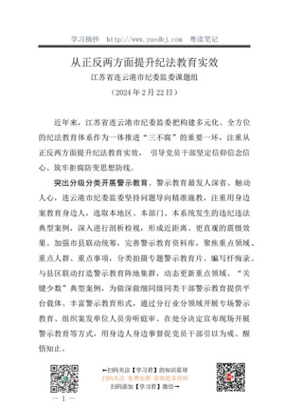 / 调研报告:20240222从正反两方面提升纪法教育实效——连云港市纪委监委课题组