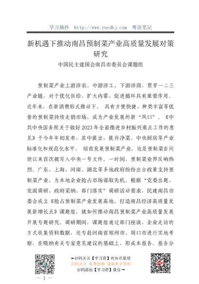 / 调研报告:20240130新机遇下推动南昌预制菜产业高质量发展对策研究——中国民主建国会南昌市委员会课题组