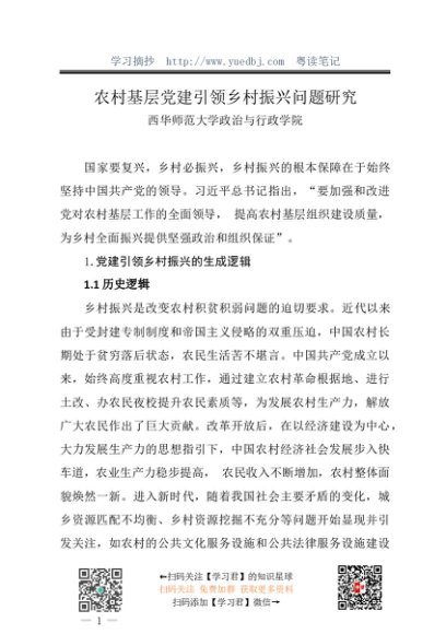 / 调研报告:20231230农村基层党建引领乡村振兴问题研究
