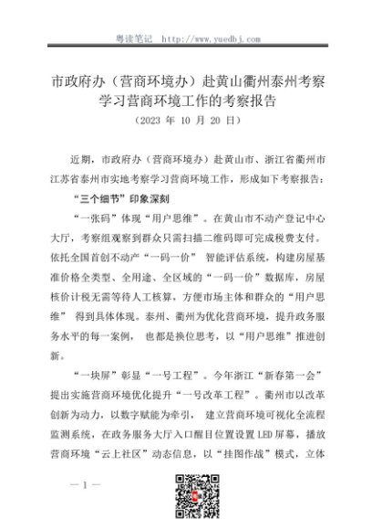 / 调研报告:20231020市政府办(营商环境办)赴黄山衢州泰州考察学习营商环境工作的考察报告