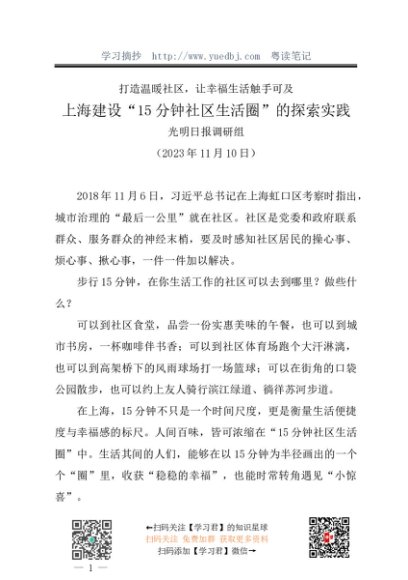 / 调研报告:20231110上海建设“15分钟社区生活圈”的探索实践