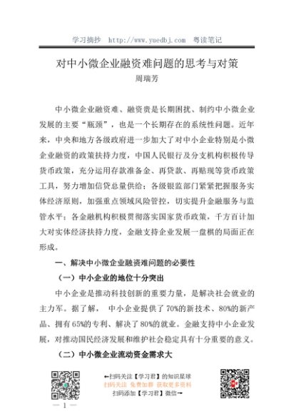 / 调研报告:20231130对中小微企业融资难问题的思考与对策